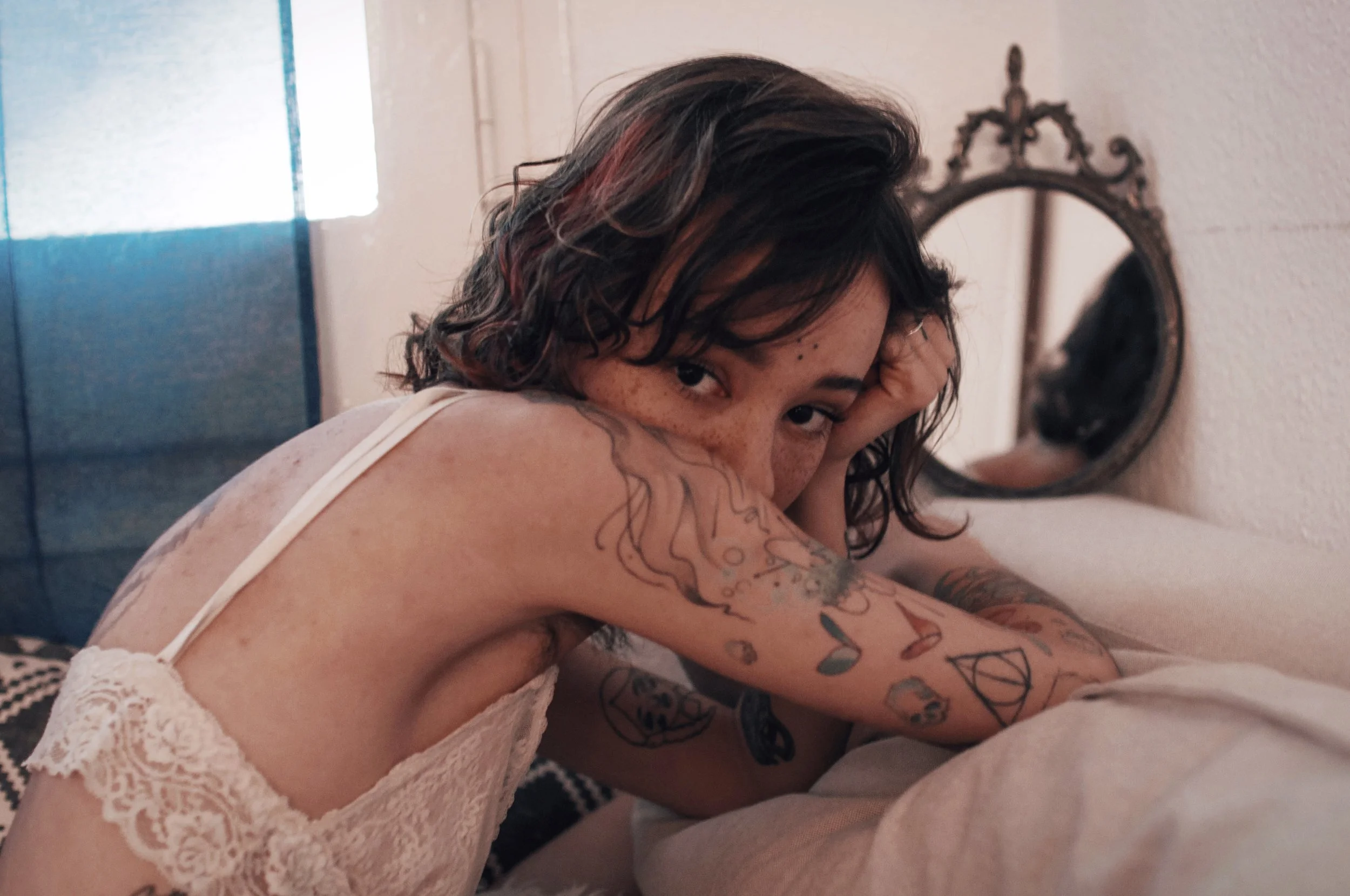She thinks back to the time of the first time the needle touched her skin. The first time it penetrated the outer layer and bled black ooze into her arms and permanently reconfigured her appearance to that of something more unique and meaningful. She thinks back to all the times the ink has crafted itself against her body, and given her peace in this incomprehensible existence. Giulia relishes the next time she can once again add a piece of art to her collection. Her tattoos aren't just a part of her body, but also a part of her soul. When she dies she will bleed ink.